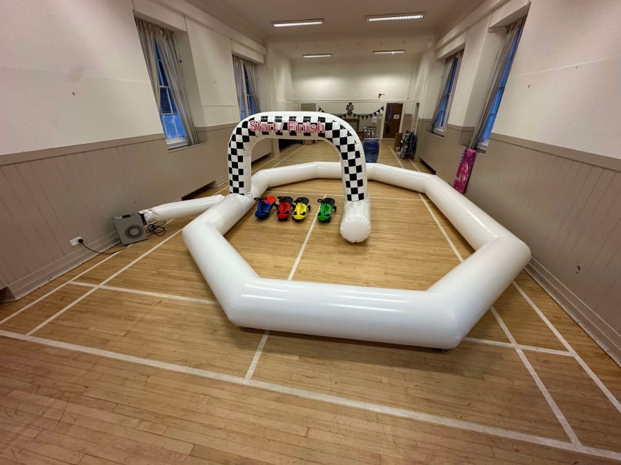Didi Race Car Track: Zoom into Fun! 🏁🎈 Ladies and gentlemen, start your engines! Our black and white Didi Race Car Track is here to take your celebration to the next level with high-speed thrills and endless smiles. Here’s why this is the ultimate party pleaser: Spacious Fast Lane: With dimensions of 20ft x 15ft and an impressive height of 8ft, our race car track offers ample space for thrilling Didi car races. It’s a perfect fit for any large hall, turning it into a grand entertainment hub where kids can zoom around and around in delightful circles! 🏎️🎉 Striking Design: Decked out in classic black and white, our race car track looks as sleek as it is fun. The bold colours are sure to catch the eye and add a dash of excitement to your event décor. It’s both visually appealing and professionally crafted for utmost safety and enjoyment. 🖤🤍 Didi Cars at the Ready: These little cars are perfect for tiny drivers eager to take the wheel and feel the thrill of the race. More cars mean more fun, so gather your mini racers and let the competition begin! 🚗💫 Perfect for Large Halls: Whether you’re hosting a party in a community centre, school hall, or a spacious home, our Didi Race Car Track is an excellent extra to ramp up the excitement. It’s particularly great for indoor events, ensuring a fantastic time regardless of the weather. 🌦️🏆 At Bake and Inflate, we believe in the power of meticulous details and cheerful vibes to make every celebration unforgettable. Let’s roll up our sleeves and rev up the fun with our sensational Didi Race Car Track! Ready, set, race into an amazing celebration! 🚀🍰🎉✨ So, let’s add a speedy splash of joy to your next event with our Didi Race Car Track – where every little twist and turn becomes a moment of pure excitement! 🏁💖🚗🎈