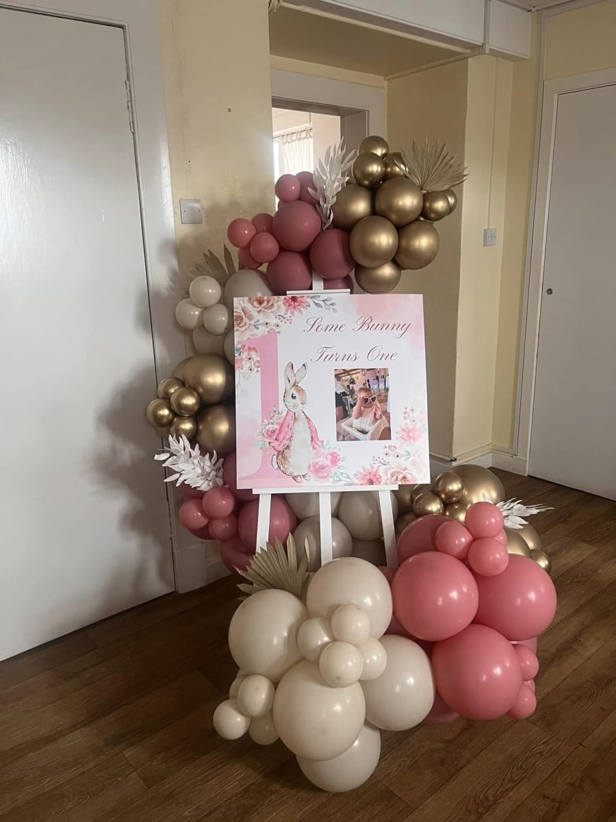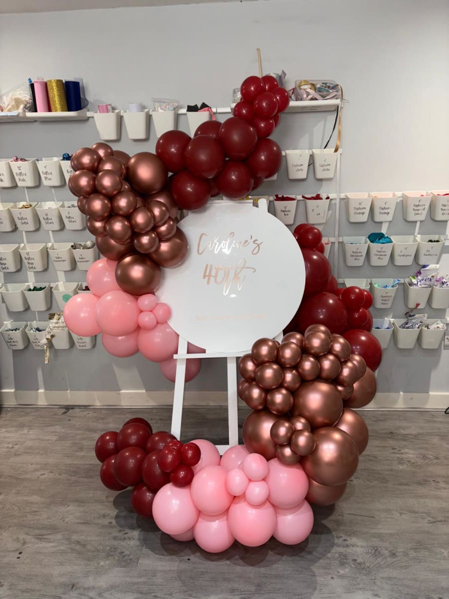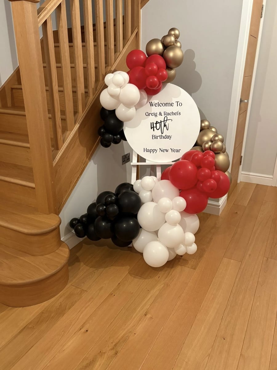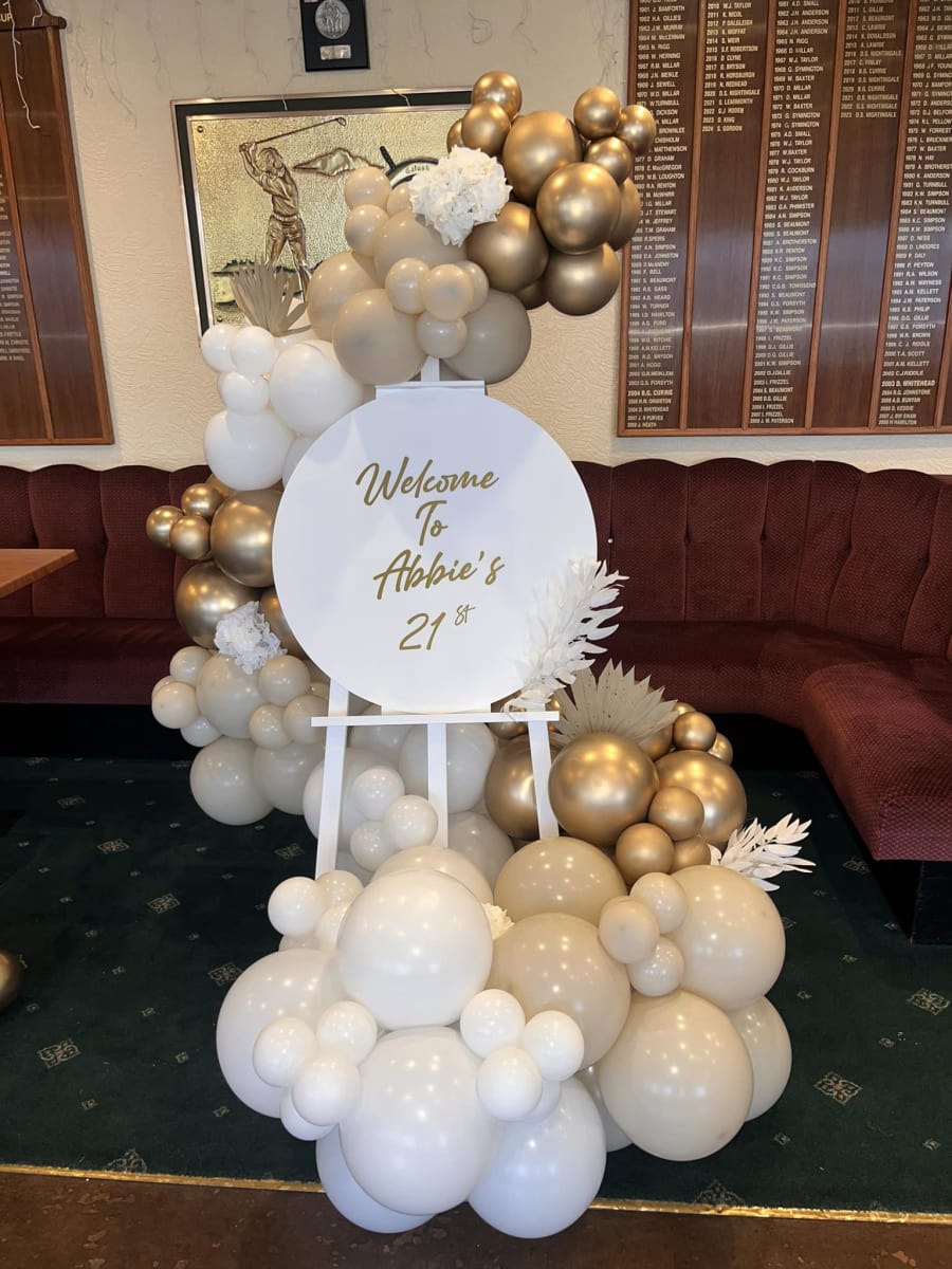 Imagine walking into a room and being greeted by a stunning easel adorned with a vibrant balloon garland that dances in colours tailored to your theme. Each balloon, meticulously chosen and arranged, creates a captivating cascade of whimsy and delight. But that's not all! At the centre of this magical display is a beautifully crafted welcome sign, customised with your very own message - whether it's a heartfelt greeting, a celebratory note, or a whimsical phrase that sets the tone for the festivities.