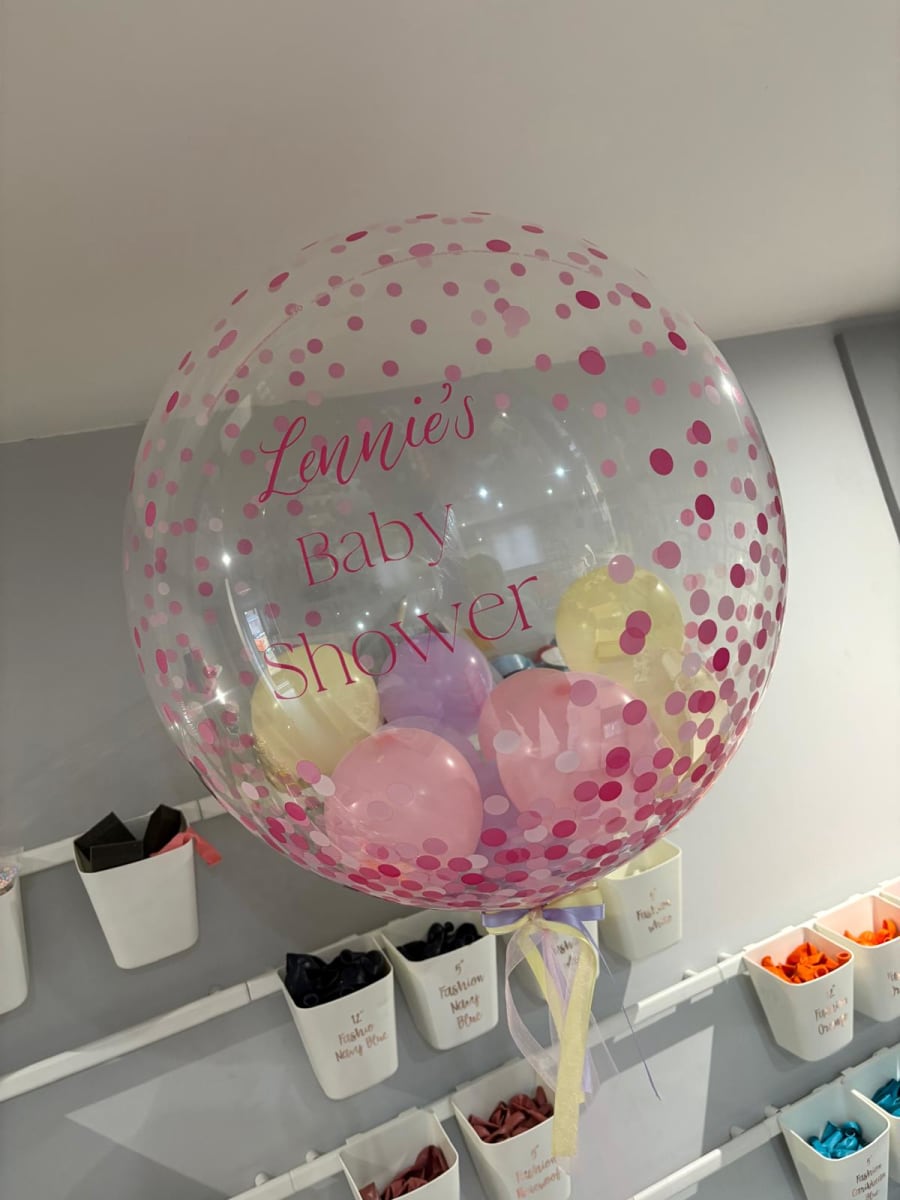 Imagine a crystal-clear bubble balloon, gracefully defying gravity as it floats above your party, filled with the enchantment of helium. But wait, there’s more! This isn’t just any balloon – it’s personalised just for you! Whether it’s your loved one’s name, a special message, or a whimsical design that speaks to your heart, our customised touch turns this bubble balloon into a statement piece that’s as unique as your celebration.
