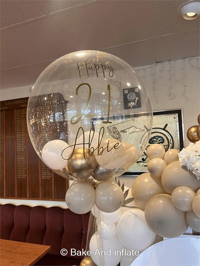 🎈✨ Welcome to the bubble-tastic world of Bake and Inflate, where every balloon is a burst of joy and a sprinkle of magic! Introducing our Personalised Helium-Filled Bubble Balloon – the ultimate floating delight that adds a unique touch to any celebration!