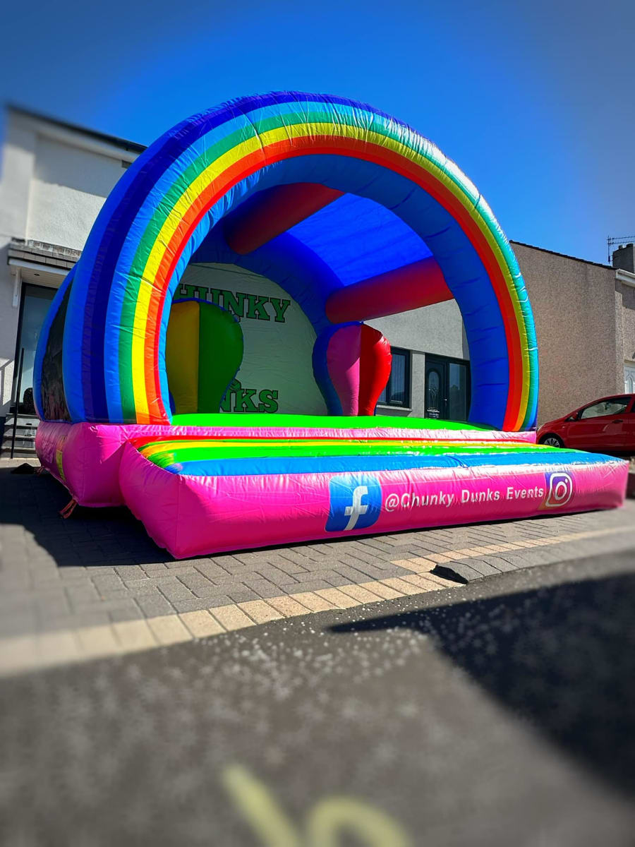 Hey there, party enthusiasts! 🎉 Ready to add a splash of colour and a heap of joy to your next celebration? Dive into the fun with our Chunky Dunks Rainbow Bouncy Castle! Bright, bold, and beautiful, this bounce-tastic wonder is perfect for bringing that extra sprinkle of magic to any event.