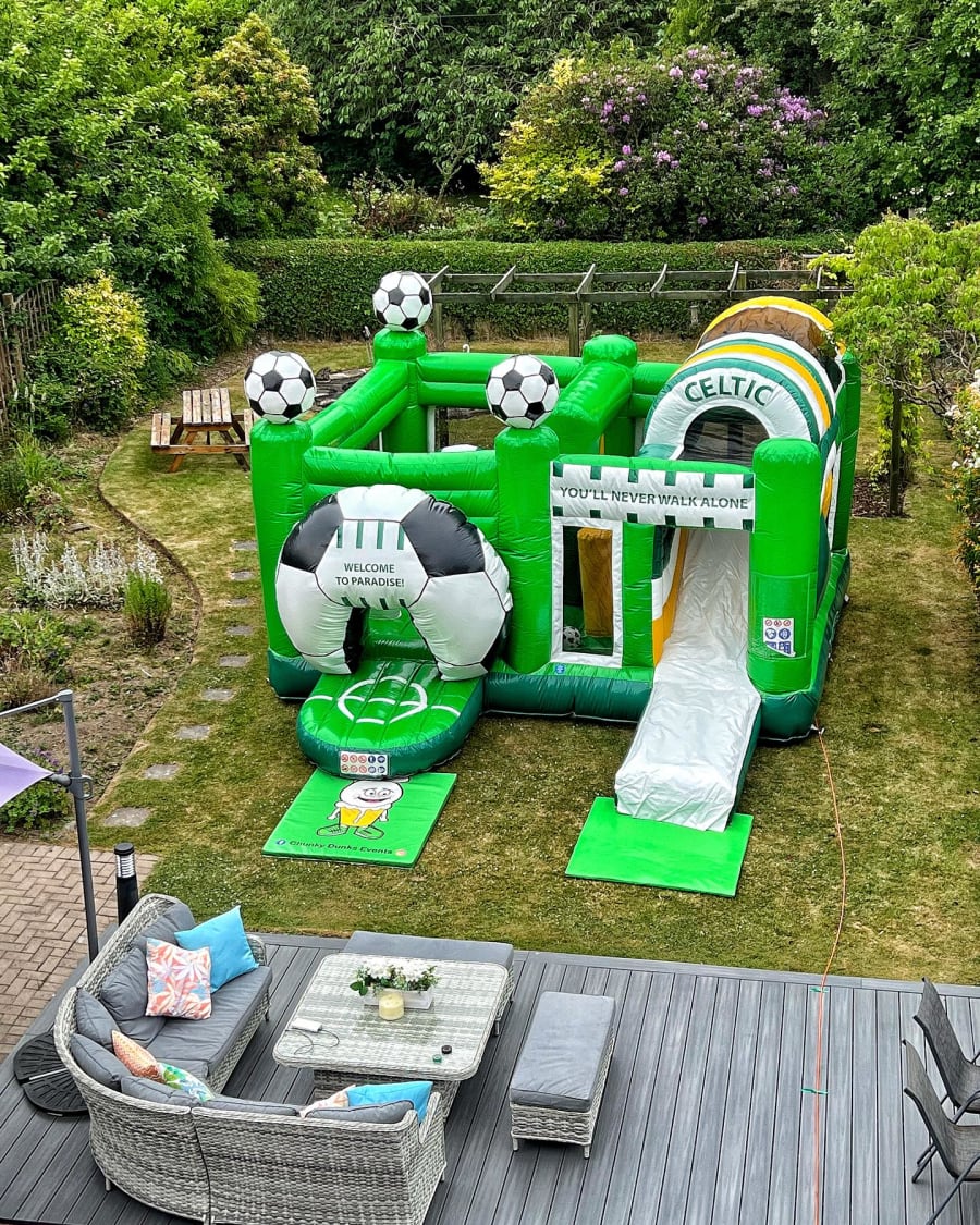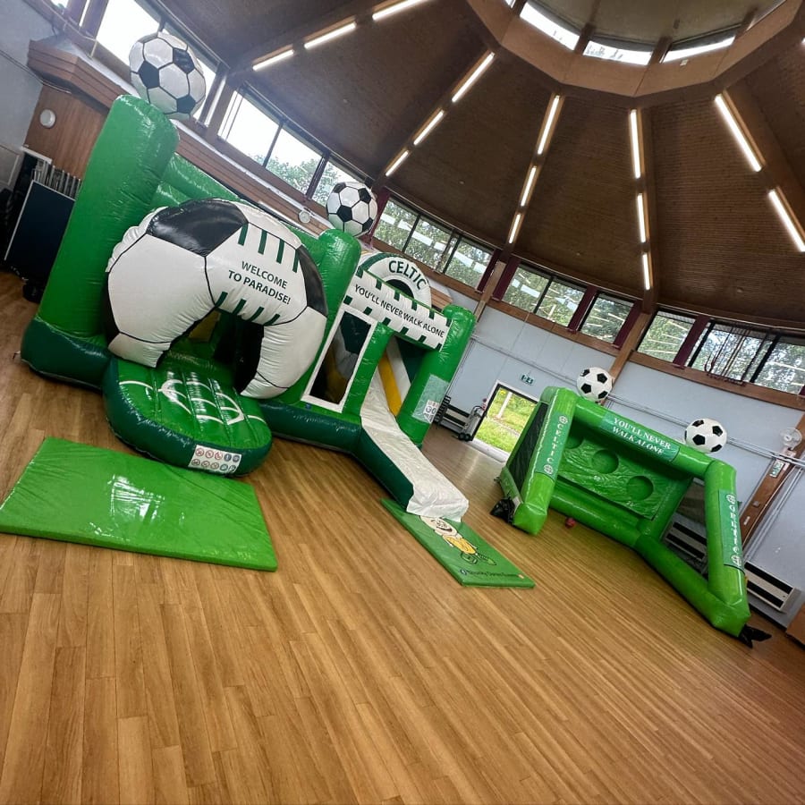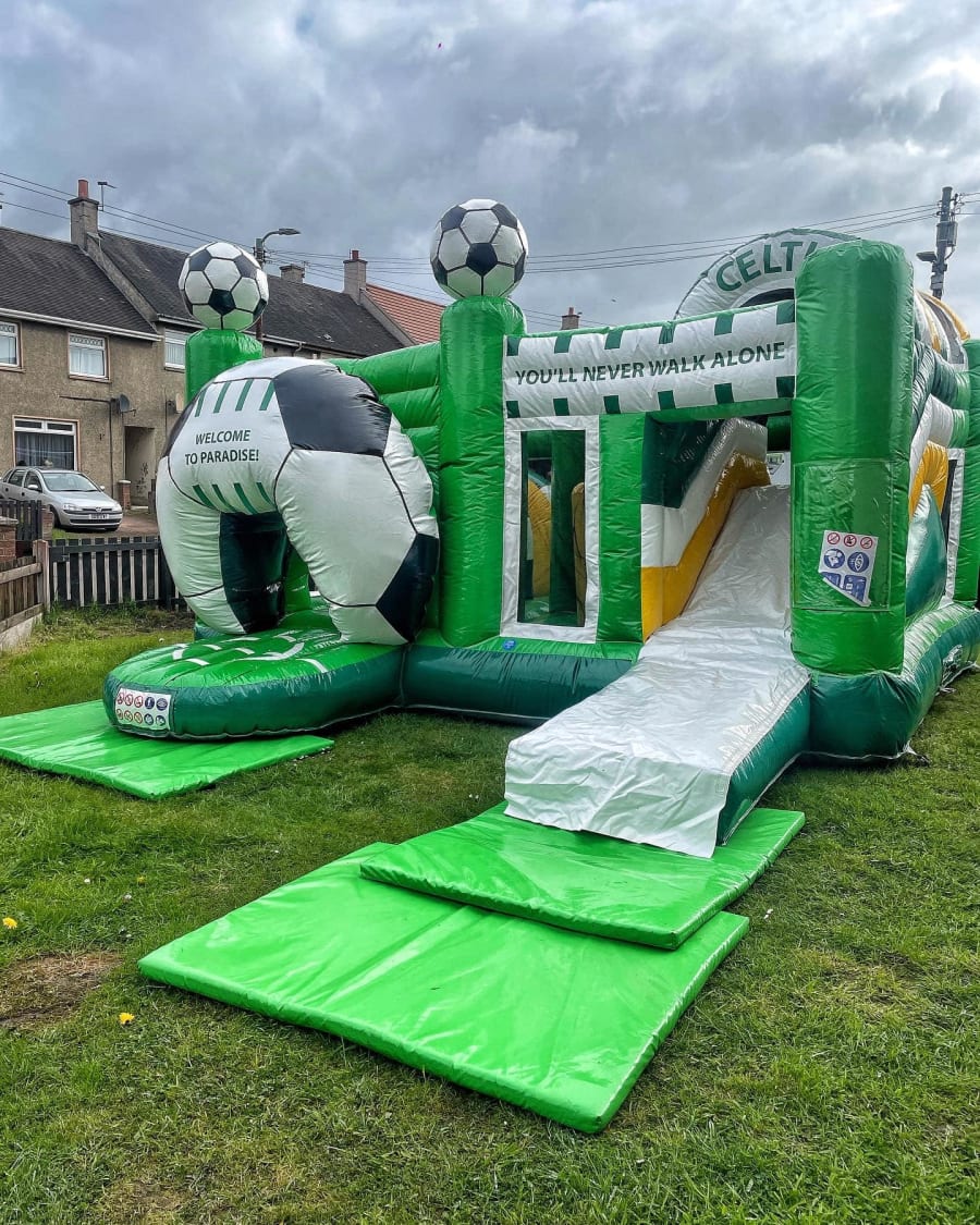 Adorned with the Celtic FC insignia and vibrant team colours, our bouncy castle isn’t just a play area, it's a statement piece at your event. Every bounce and slide won’t just be fun, but a celebration of that beloved team spirit!