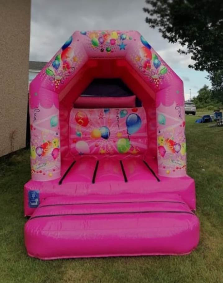 Imagine a sea of bright pink fun, interspersed with lively, cheerful balloon party graphics! This bouncy castle is a celebration in itself, inviting kids and even the young-at-heart to bounce and revel in the festive atmosphere. Every bounce feels like a high-five from a party fairy, adding that extra sprinkle of magic!