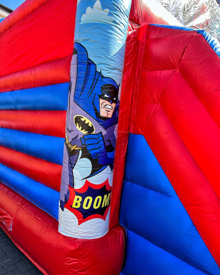 Epic Design: Wrapped in bold and colourful graphics, the inflatable showcases a diverse lineup of their favourite caped crusaders, making every bounce feel like stepping into a vibrant comic book universe! 🌌