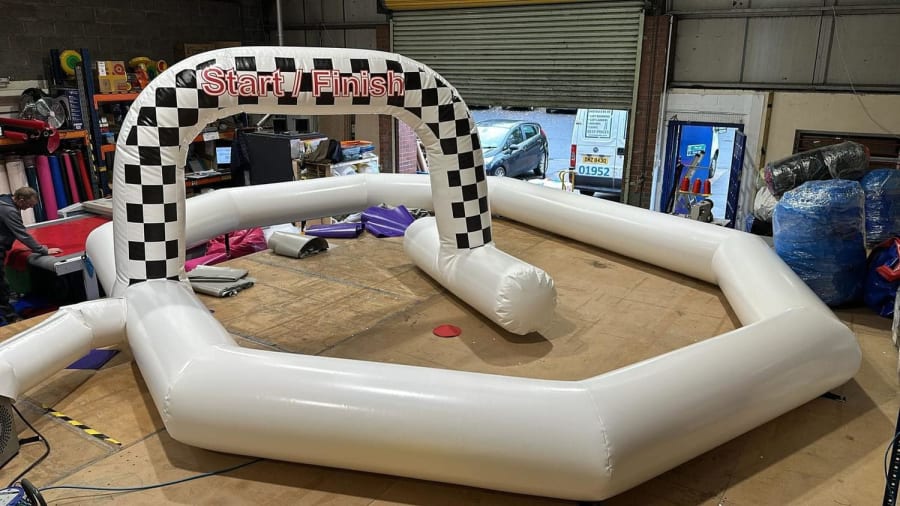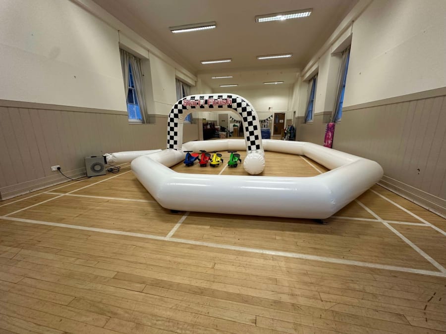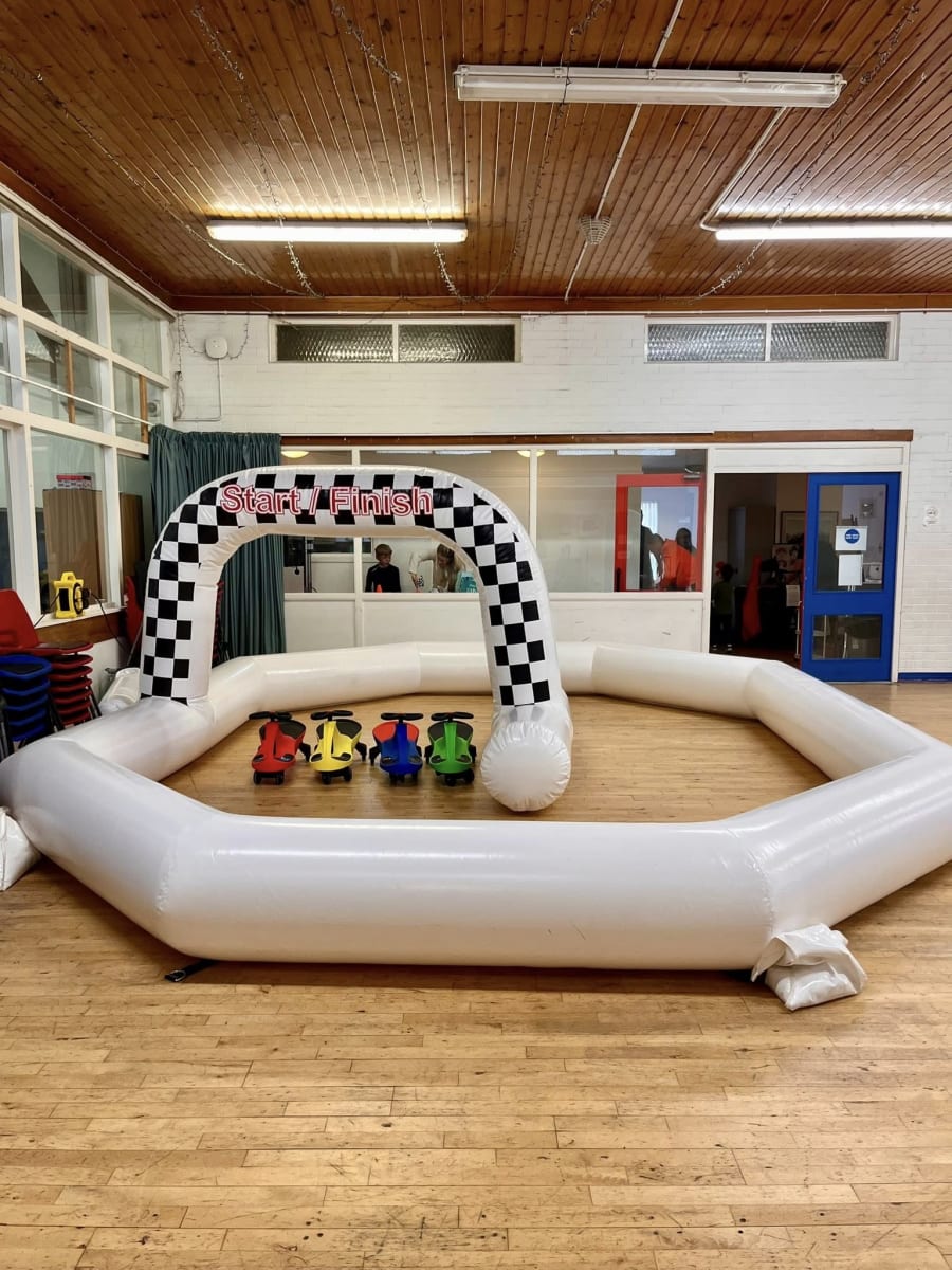 Didi Race Car Track: Zoom into Fun! 🏁🎈 Ladies and gentlemen, start your engines! Our black and white Didi Race Car Track is here to take your celebration to the next level with high-speed thrills and endless smiles. Here’s why this is the ultimate party pleaser: Spacious Fast Lane: With dimensions of 20ft x 15ft and an impressive height of 8ft, our race car track offers ample space for thrilling Didi car races. It’s a perfect fit for any large hall, turning it into a grand entertainment hub where kids can zoom around and around in delightful circles! 🏎️🎉 Striking Design: Decked out in classic black and white, our race car track looks as sleek as it is fun. The bold colours are sure to catch the eye and add a dash of excitement to your event décor. It’s both visually appealing and professionally crafted for utmost safety and enjoyment. 🖤🤍 Didi Cars at the Ready: These little cars are perfect for tiny drivers eager to take the wheel and feel the thrill of the race. More cars mean more fun, so gather your mini racers and let the competition begin! 🚗💫 Perfect for Large Halls: Whether you’re hosting a party in a community centre, school hall, or a spacious home, our Didi Race Car Track is an excellent extra to ramp up the excitement. It’s particularly great for indoor events, ensuring a fantastic time regardless of the weather. 🌦️🏆 At Bake and Inflate, we believe in the power of meticulous details and cheerful vibes to make every celebration unforgettable. Let’s roll up our sleeves and rev up the fun with our sensational Didi Race Car Track! Ready, set, race into an amazing celebration! 🚀🍰🎉✨ So, let’s add a speedy splash of joy to your next event with our Didi Race Car Track – where every little twist and turn becomes a moment of pure excitement! 🏁💖🚗🎈