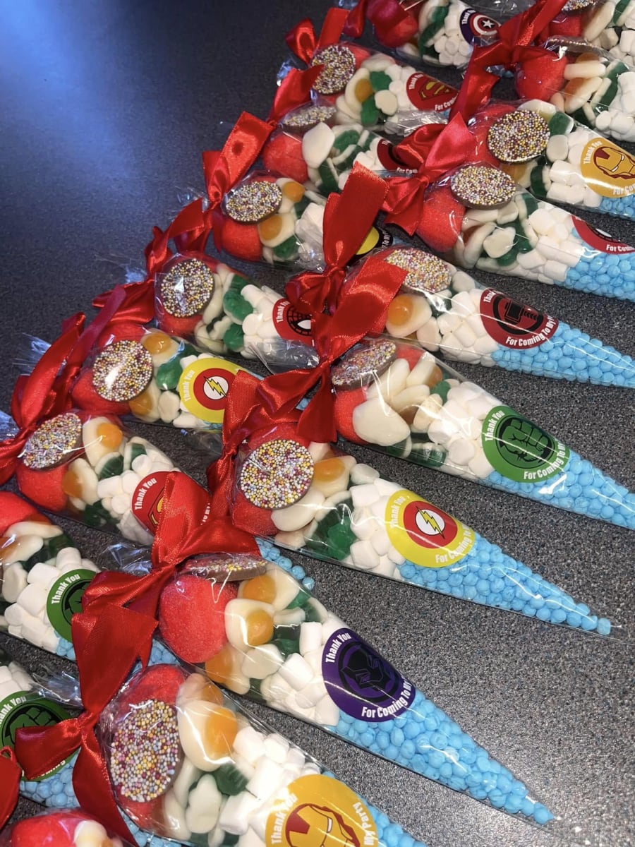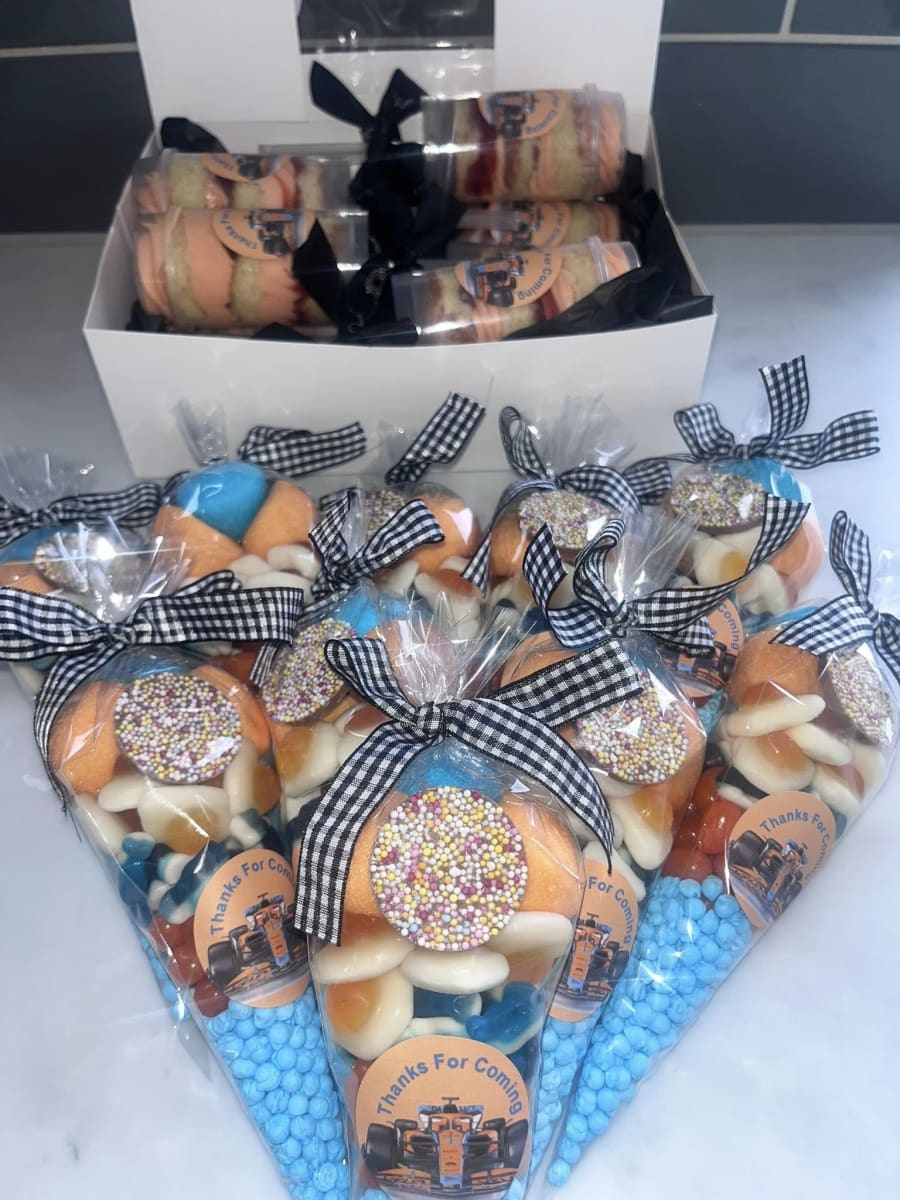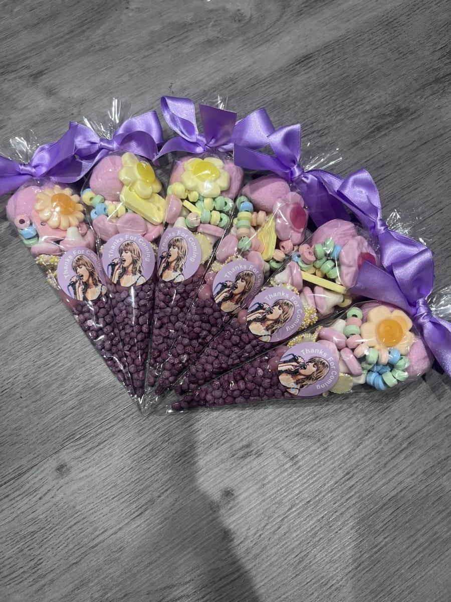 Sweet Cones Delicious Treats for Any Occasion! Brighten up your celebrations with our delightful Sweet Cones! Perfectly packed with a variety of delicious candies, they’re an irresistible treat for both kids and adults. Ideal for birthdays, parties, or as a special gift, these cones are sure to bring smiles to everyone's faces. 🍬 Features: Assorted Sweets: Each cone is filled with a carefully selected mix of candies that includes gummies, chocolates, marshmallows, and more. Eye-Catching Design: Beautifully presented in a clear cone-shaped bag with a colourful ribbon, making it a perfect addition to any party display. Generous Size: Each cone holds plenty of sweets to satisfy every sweet tooth, ideal for party favours or giveaways. Customizable Options: Personalize your sweet cones with custom labels or tags for birthdays, weddings, baby showers, or corporate events. 🎉 Perfect For: Birthday Parties: Add a touch of sweetness to your celebrations with these fun and festive favours. Weddings and Baby Showers: Elegant and customizable, sweet cones are a charming addition to your special day. Holiday Celebrations: Whether it’s Halloween, Christmas, or Easter, sweet cones make delightful seasonal treats. Corporate Events: Impress your guests with customized sweet cones, perfect for any corporate gathering or marketing event. 💡 Why You'll Love It: Our Sweet Cones are not just a treat, they are an experience! Bursting with a variety of flavours and textures, each cone promises a delightful surprise. They are perfect for party favours, gifts, or simply to indulge in a moment of sugary bliss. Order your Sweet Cones today and make your next event unforgettable with these delicious and beautifully presented treats! 🍭✨🍫