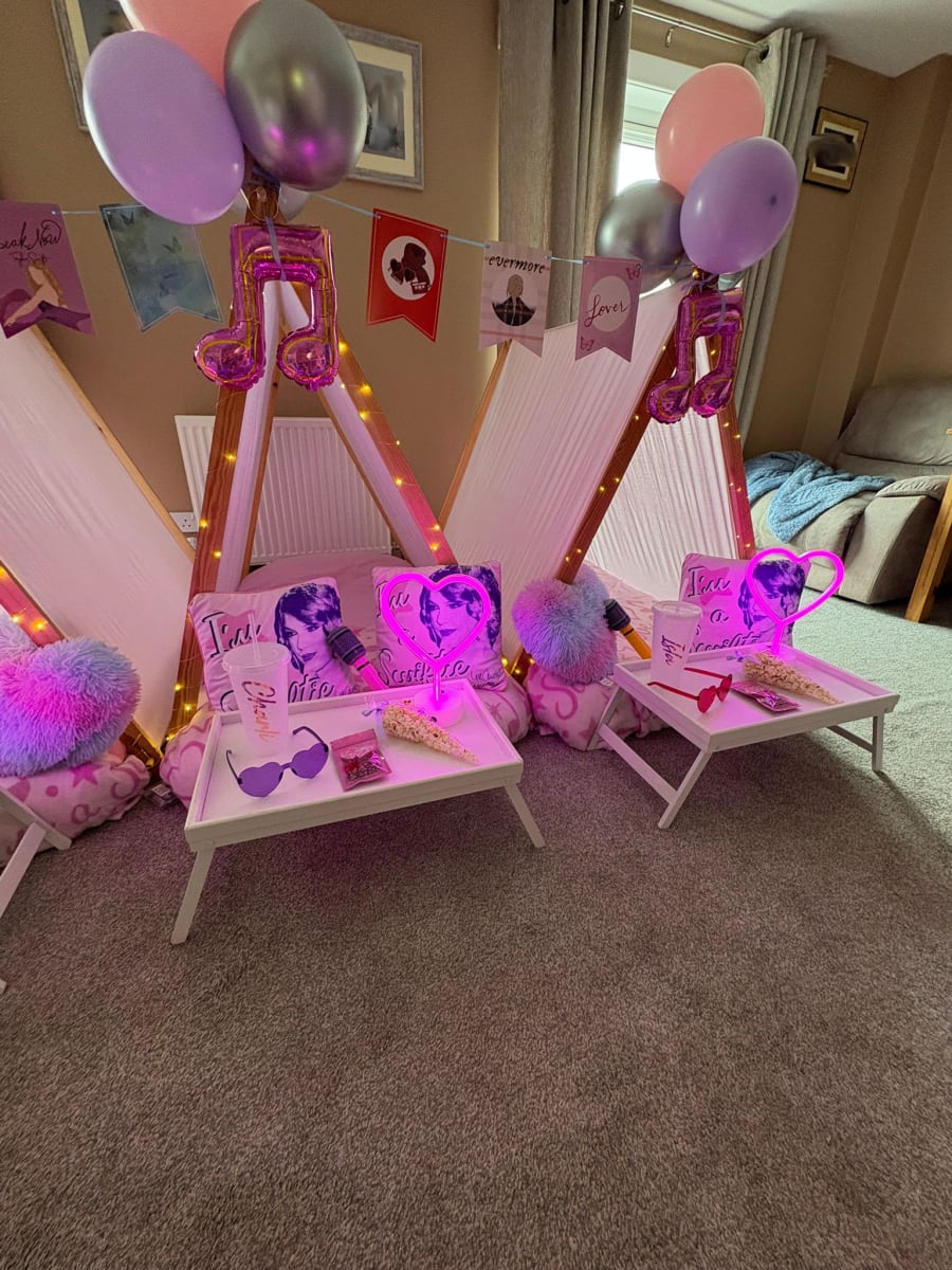 ❄️ Frozen | Stitch Looking for something custom? No problem! Let us know, and we’ll arrange any specific theme you want! 🦸♀️🧜♂️ Each teepee rental includes: 🛏️ Mattress, duvet, pillow, and cosy blanket 🌟 Nightlight and themed accessories 🍿 Popcorn 🥤 Personalised drink cup (keep) 🍬 Sweetie pouch 🍳 Breakfast tray 👓 Glasses (keep) 🎤 microphone (keep) 💸 Cost: £35 per teepee 🎉 Minimum: 2 teepees | Maximum: 4 teepees 📩 Message us or comment below for bookings and inquiries. 🛏️✨